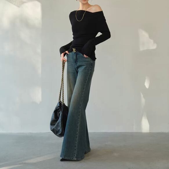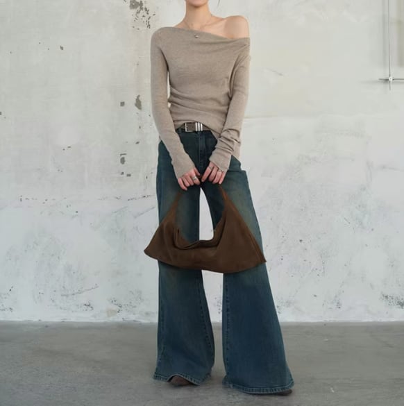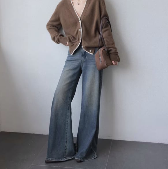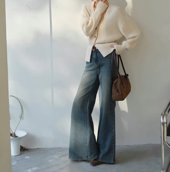 抜け感のあるシルエットが魅力のワイドデニムパンツ。