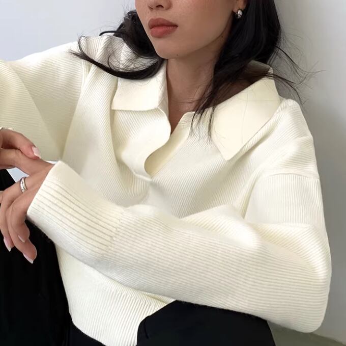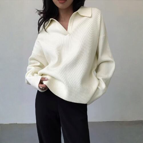 シンプルでありながら洗練されたデザインのニットシャツ。オーバーサイズのシルエットは、リラックスした雰囲気を演出し、カジュアルからビジネスまで幅広いシーンで活躍します。