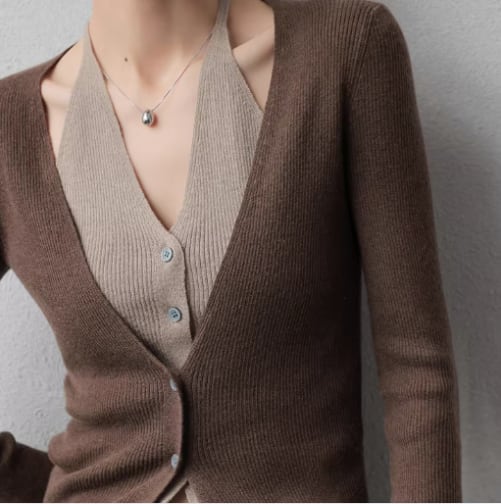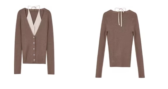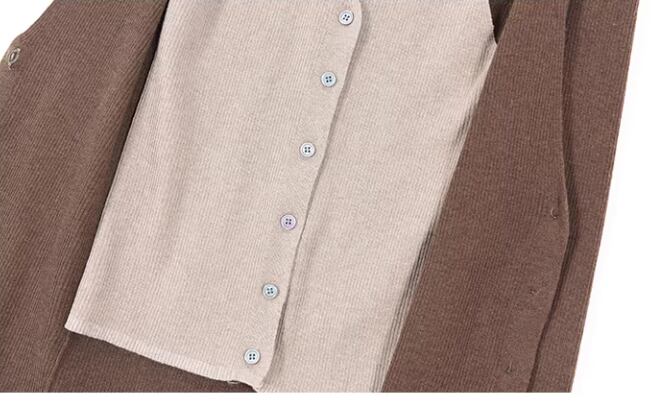 ブラウン 長袖 ニット フェイクツーピースカーディガン /042