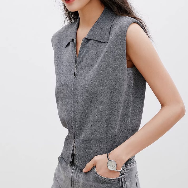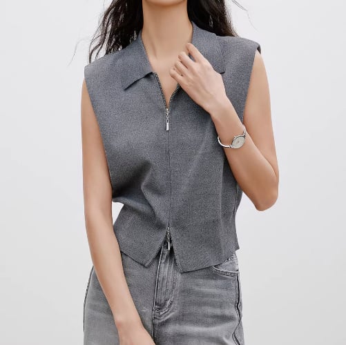 洗練されたデザインが魅力のノースリーブダブルジッパーです。シンプルでありながら個性的なディテールが際立ち、スタイリッシュな印象を与えるアイテムです!