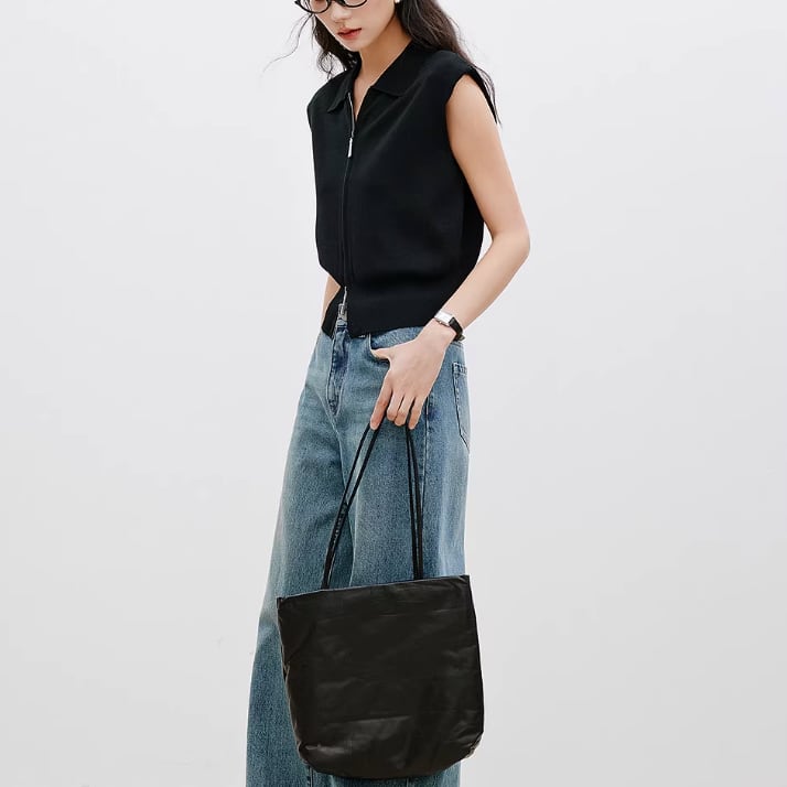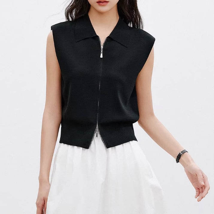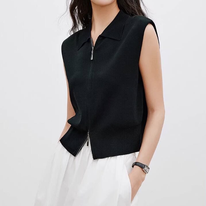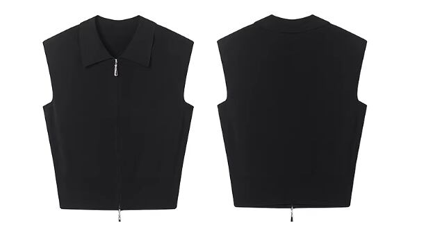 洗練されたデザインが魅力のノースリーブダブルジッパーです。シンプルでありながら個性的なディテールが際立ち、スタイリッシュな印象を与えるアイテムです!