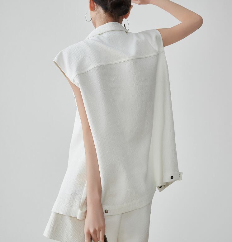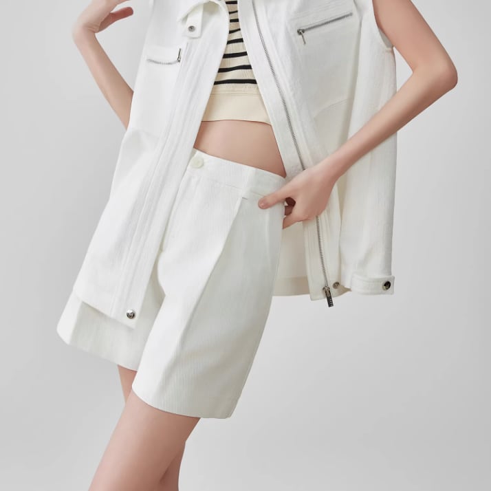 韓国風ノースリーブホワイトベストとセットアップとしても着れるショートパンツです!