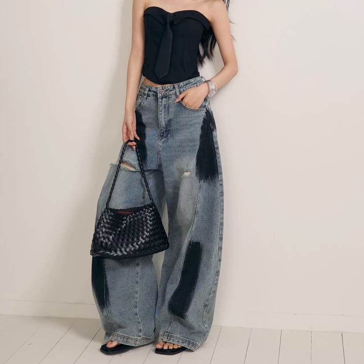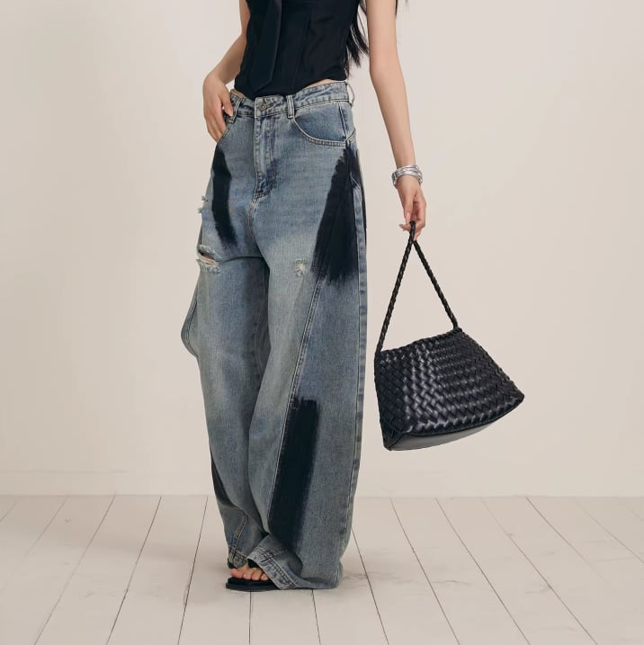 ダメージ加工 カーブデザイン デニムパンツ /063
