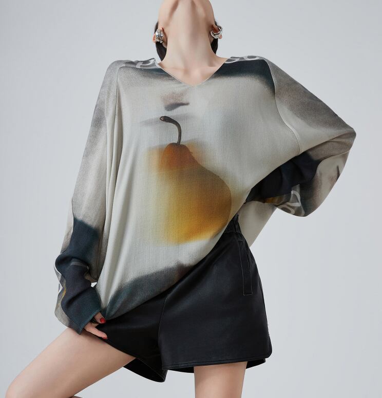 爽やかな印象を与えるグレーのVネック長袖プリントTシャツ。ヴィンテージ感のあるプリントが独自の雰囲気を醸し出し、スタイリングに個性を添えます。デニムやチノパン、スカートとの相性も抜群で、さまざまなシーンで活躍する一着です!