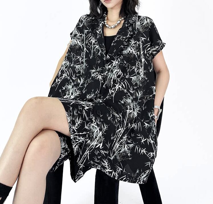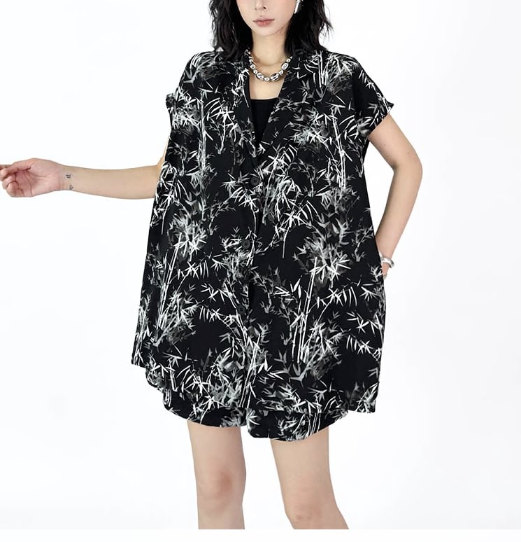 伝統的な和柄を取り入れたセットアップシャツとショートパンツの印象的なデザイン。個性的な和柄が、一味違ったコーディネートを演出します。リラックス感のあるシルエットで、カジュアルな日常シーンはもちろん、特別な集まりやイベントにもぴったりのアイテムです!