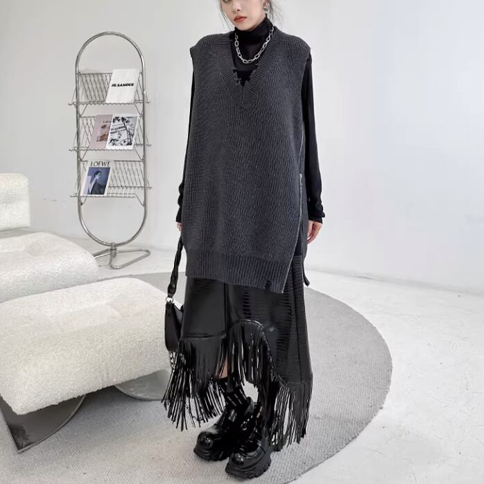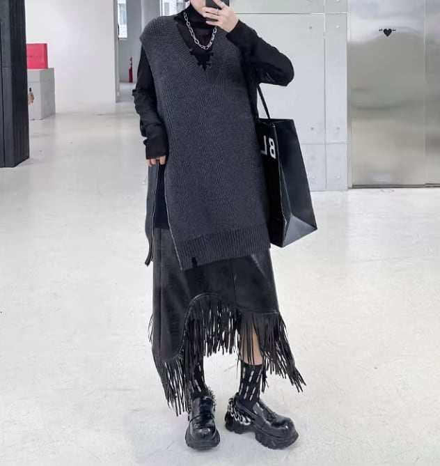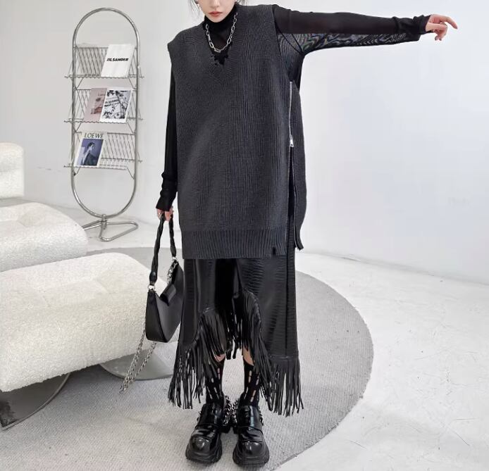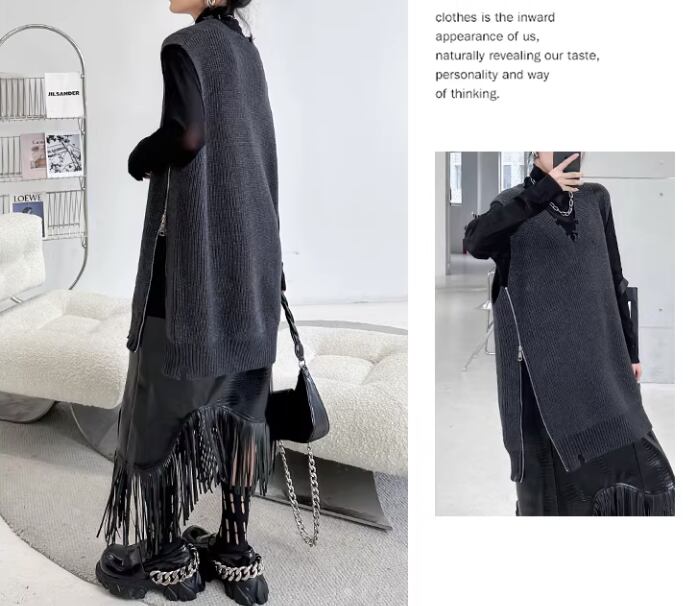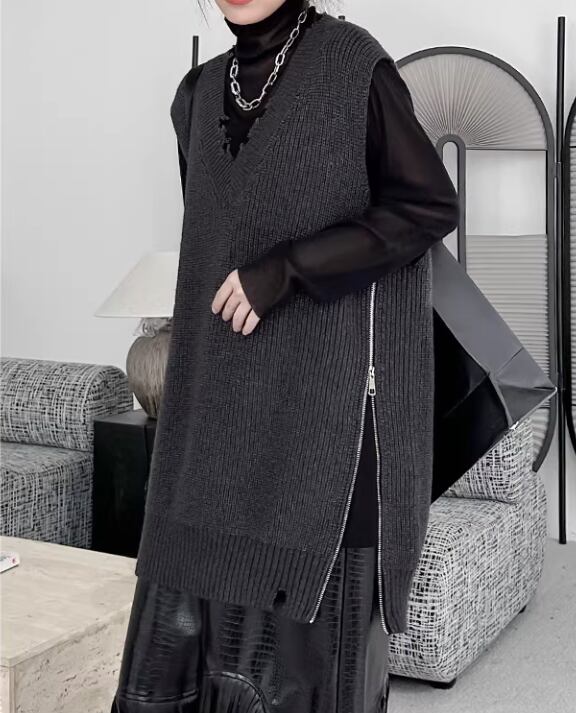 サイドに大胆なジッパーのデザインが特徴のベストです。