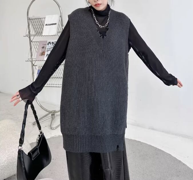 大きめのベストでどんなコーディネートにも合わせやすいアイテムです。