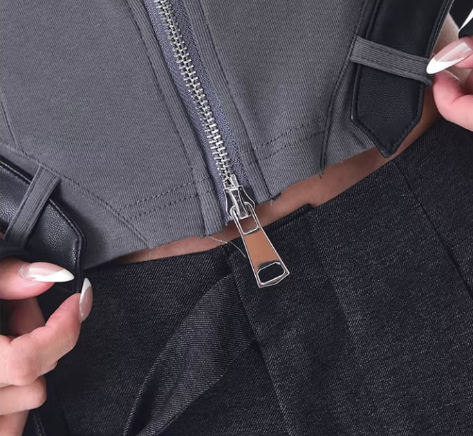個性的なデザインが魅力のレザー風パッチワークトップス。ダブルジッパー風のスタイルがアクセントになり、コーディネートに遊び心をプラスします。カジュアルな日常使いはもちろん、特別なお出かけにもぴったりな一枚です!ファッションに自分らしさを取り入れたい方に最適なアイテムです。
