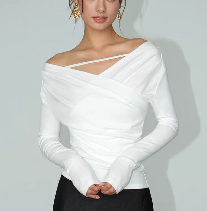 Vネック オフショルダー オフホワイト / 082