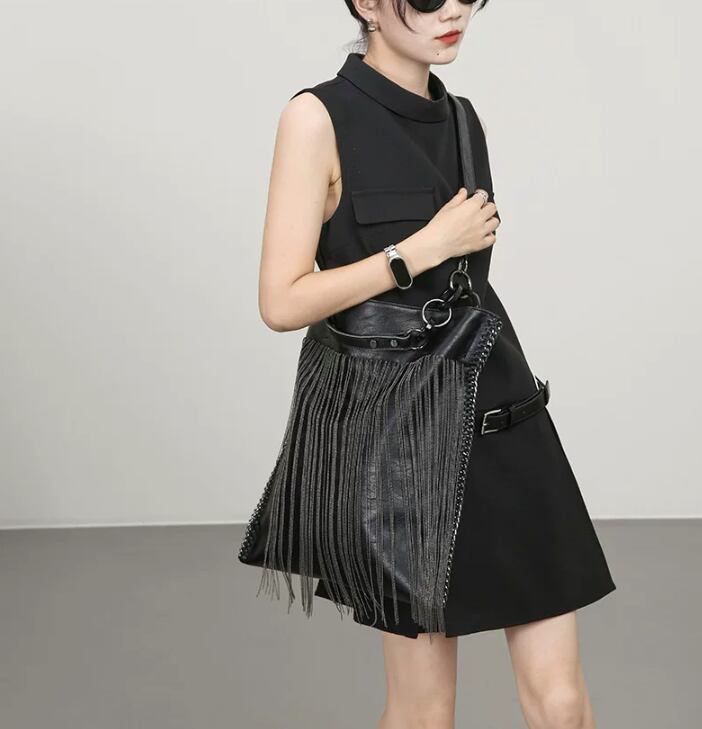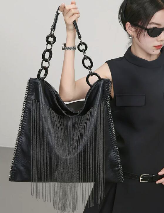 華やかさと個性を兼ね備えたメタルタッセルチェーンバック。レースのような繊細なチェーンが特徴で、持ち手のタッセルが目を引くデザインです。シンプルな装いに華を添え、カジュアルからお出かけスタイルまで幅広く活躍してくれるアイテムです!このバックを手にすれば、あなたのコーディネートが一層引き立つことでしょう。