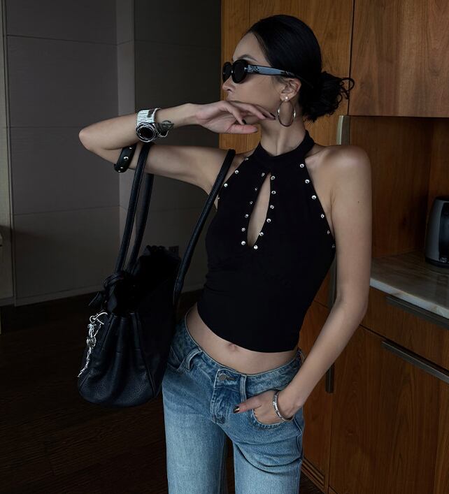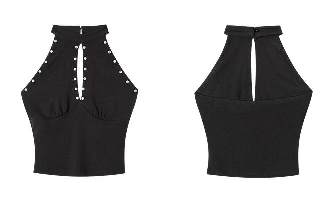 【ライトストーン】セクシーなホルターネックトップス ブラック /104