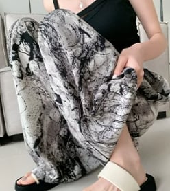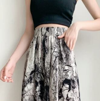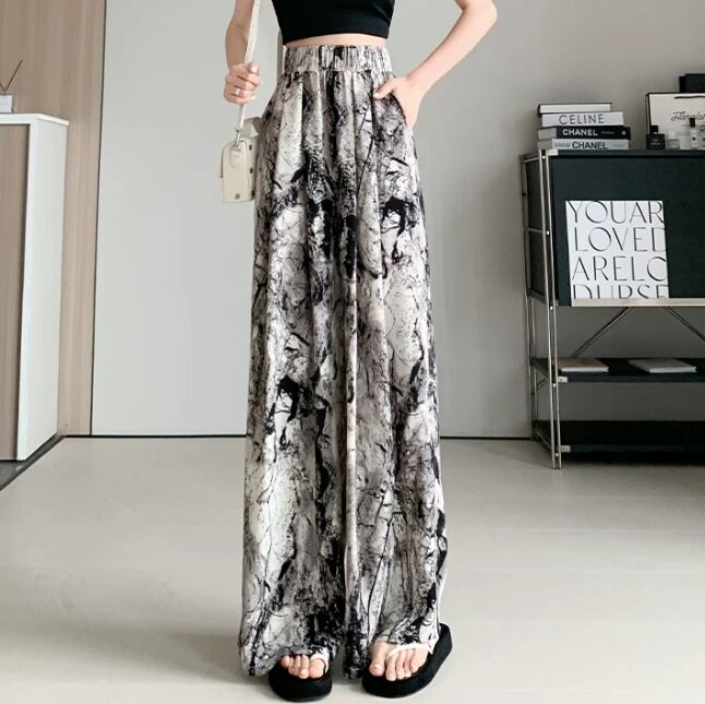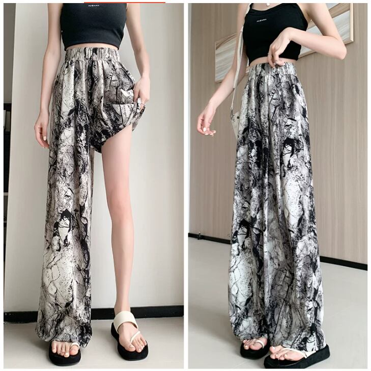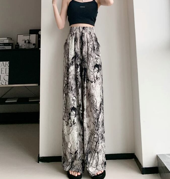 【ダイダイ柄リラックスパンツ】ハイウエスト ゴム ワイドレッグ /105