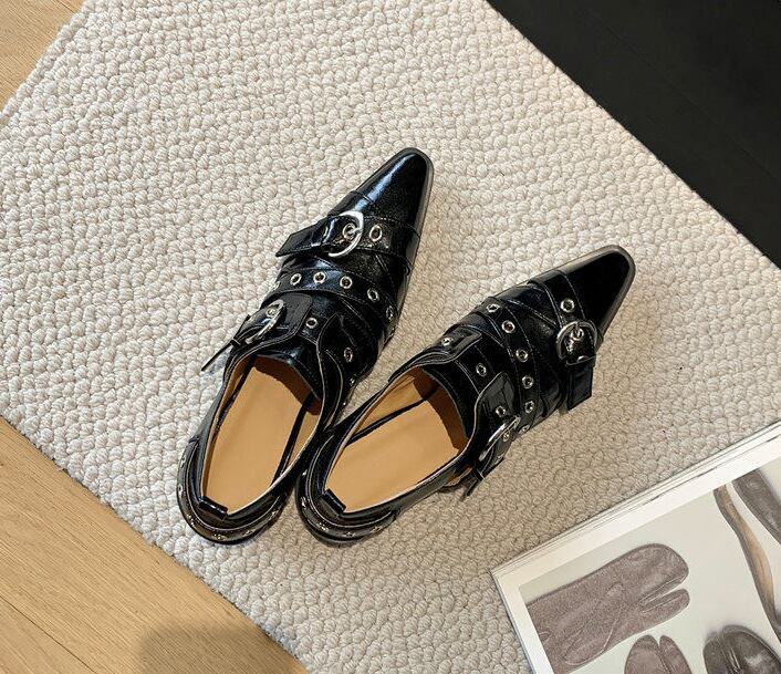 【ベルトデザイン】レザーポインテッドシューズ ブラック /106
